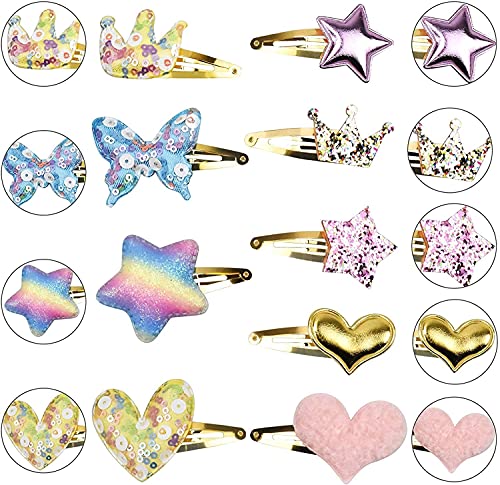 ✿ La Confezione Include: 16 confezioni / 8 paia di fermagli per capelli in 8 stili diversi, include stella / corona / cuore / farfalla, abbastanza per abbinarsi ai diversi stili di abbigliamento di tuo figlio.