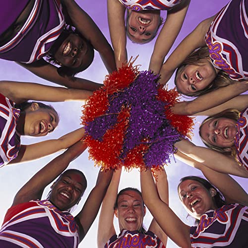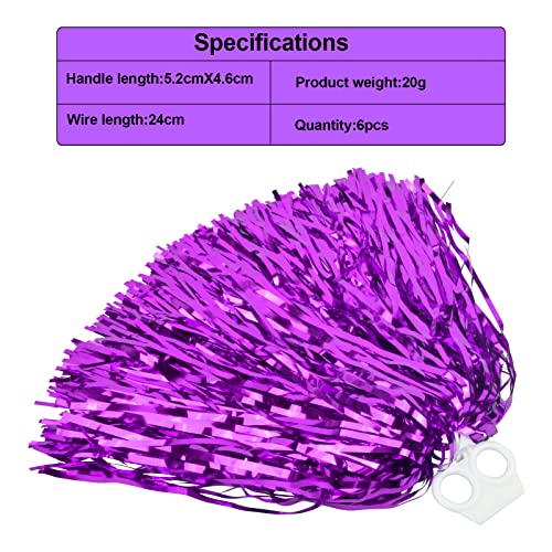 Pinsheng 6 Pezzi Cheerleading Pom Poms, Cheerleader Pompon Colorati con Anello in Plastica per Sport Ballo di Festa (Viola)