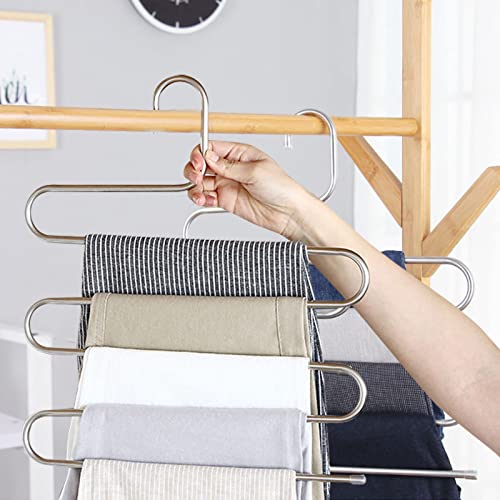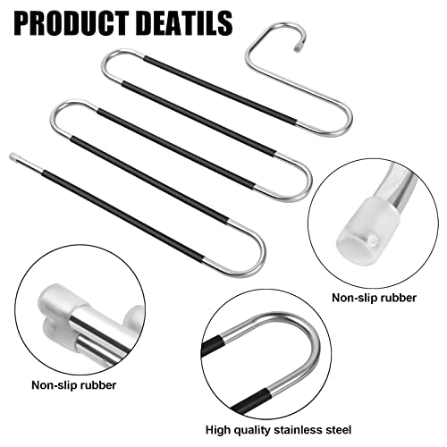 Pinsheng 4 Pezzi Grucce per Pantaloni, Grucce Pantaloni Salvaspazio in Acciaio Inox, Appendini a S Grucce Multiple per Pantaloni Antiscivolo per Sciarpe Jeans Vestiti Pantaloni Asciugamani