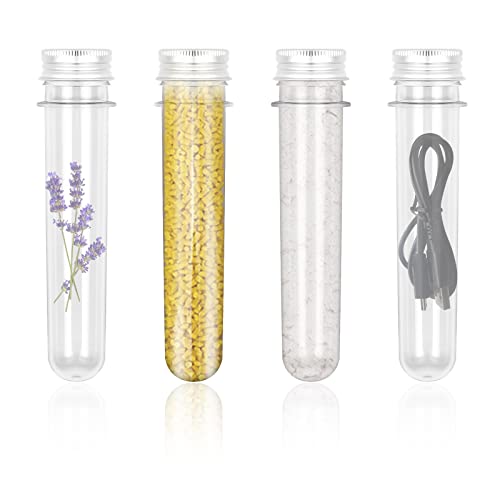☛ [Ampia Applicazione]: le nostre provette possono essere utilizzate in vari modi. Possono contenere liquidi, polveri e solidi come perline, semi, sali da bagno, noci, pillole e forniture di laboratorio, ecc. Puoi anche creare provette di plastica trasparenti fai-da-te e decorarle con adesivi, pennarelli, etichette, nastri o altro.