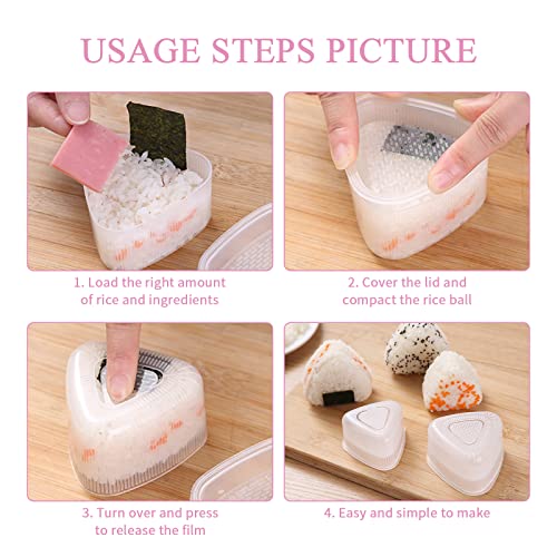 1. Riceverai: Viene fornito con 4 pezzi, tra cui 1 grande stampo triangolare sushi, 1 piccolo stampo triangolare sushi, 1 pressa antiaderente Musubi maker, e 1 spatola di riso. Diversi stili di muffa soddisfano le vostre esigenze per fare adorabili palline di riso.