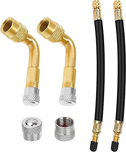 Pinsheng Prolunga Valvola Pneumatici, Estensione Valvola Pneumatico Flessibile 2 Pezzi 180 mm con 2 Pezzi Adattatore Estensione Valvola Pneumatici 90 Gradi in Ottone per Auto Camion Moto Bici Scooter