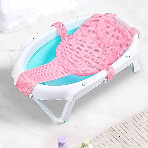 Pinsheng Rete di Supporto per Il Bagnetto del Neonato, Rete Bagnetto, Sling Shower Mesh Anello Culla per Amaca Antiscivolo Regolabile Per Sicurezza Per Neonato Che Fa Il Bagno 0-3 Anni 1 Pezzo (Rosa)