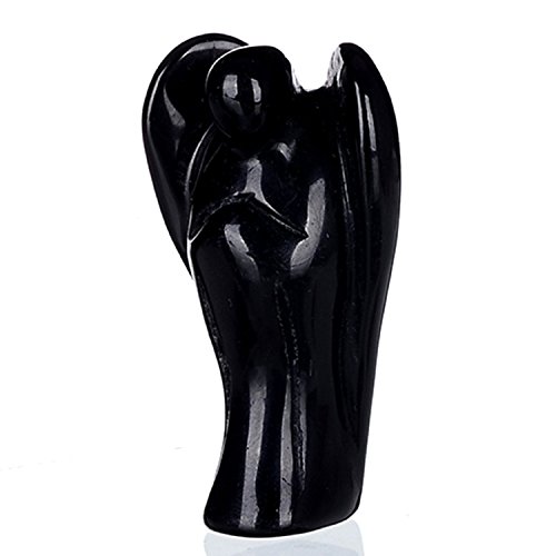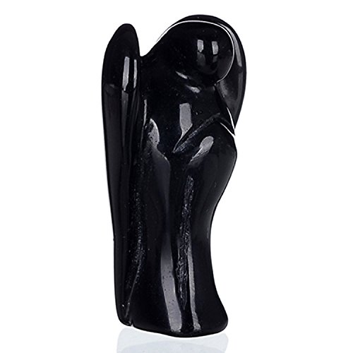 Pinti, splendida statuetta tascabile a forma di angelo in cristallo, per Reiki, guarigione, energia dei Chakra, Black Obsidian, 2.0 Inch