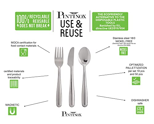 Pintinox, Set 16 pezzi posate da viaggio, ufficio, pic-nic USE & REUSE in acciaio inox nichel free con custodia trasparente (SET 16 PEZZI)