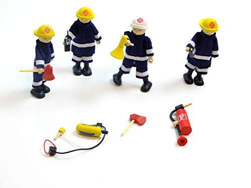 Aur Pintoy, Kit di 4 Vigili del Fuoco con Accessori - Giocattolo in Legno per Bambini