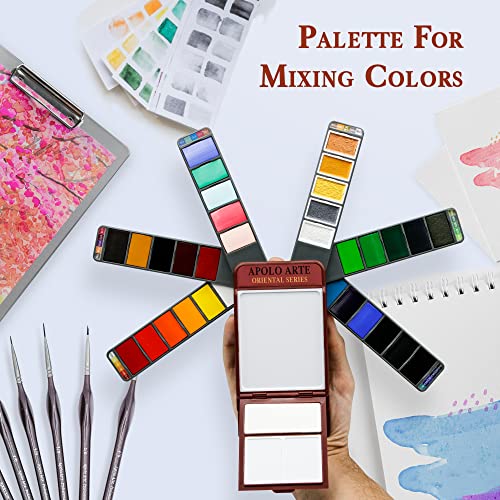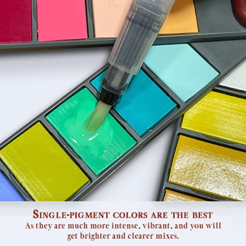 Pinturale Set Acquerelli Professionali - Aquerelli Set Professionale | 32 Colori Acquerello (Include Acquerelli Metallizzati) + Pennello per Aquarelli Pittura | Acquarelli Professionali Per Artisti