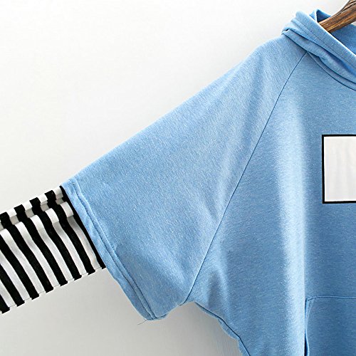 PINTUTU di Moda Ulzzang Moda Estetico Punk Mattina Autoscatto Testo Strisce Maniche Modello Felpa con Cappuccio Giacca Accostare (Blu, L)