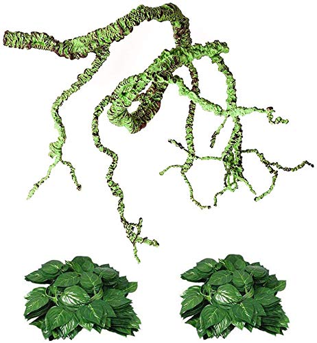 Pinvnby, rampicante flessibile a forma di ramo giungla rettile, rampicante artificiale, in plastica, foglie di terrario per animali domestici, decorazione per lucertola, rane, serpenti, 3 pezzi