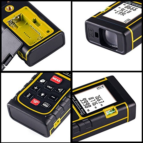 Pinwheel 60m/196ft Laser Measure Distance Meter Rangefinder Portable Tape Measuring Finder Tool with Bubble Level and Digital Display