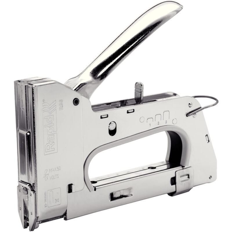 100% nuovo. Fino al 40% di leggere con 3 livelli di forza brevettato regolamentazione. Lunga durata di vita - Progettato per oltre 100.000 scatti Corpo e componenti interni completamente in acciaio Adatto per cavi a bassa tensione fino a 50 V e un diametro di fino a 4,5 mm Graffette per cavi tipo 28/9 - 11 mm Resistente Tacker completamente in acciaio à š cavo installation. Adatto à š a bassa tensione cavo fino a max. 50 V fino a 4,5 mm di diametro  ad esempio telefono, TV, impianti di allarme, cavo per altoparlante, ecc.