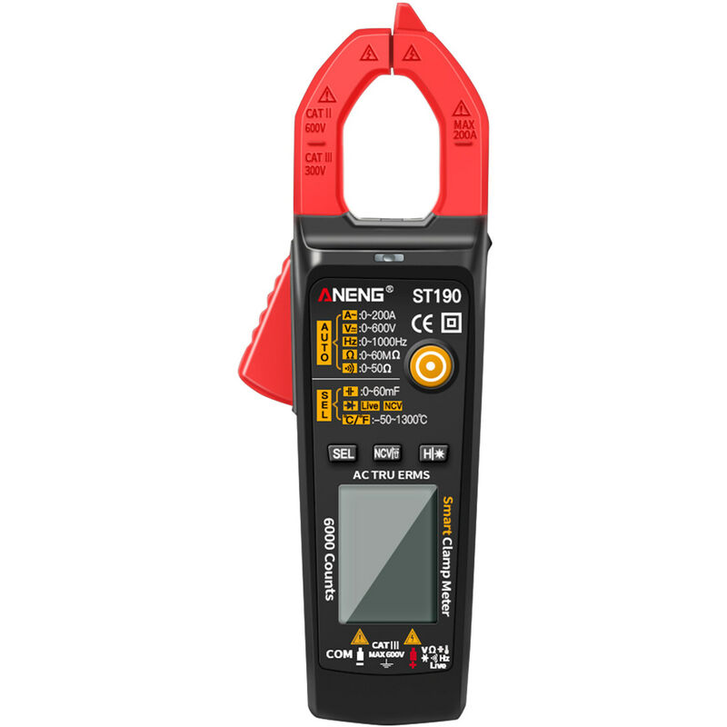 Questo strumento multifunzionale presenta la funzione di multimetro, misuratore di temperatura, penna per test elettrici e torcia elettrica. Con schermo LCD retroilluminato per una facile lettura e una presa comoda per un facile utilizzo, può essere ampiamente utilizzato nei test elettrici, nella riparazione di automobili, nella misurazione della temperatura industriale, ecc. Nota: 1. Si prega di leggere attentamente il manuale dell'utente prima dell'uso. 2. Le dimensioni e il colore possono essere leggermente diversi a causa della misurazione manuale e delle diverse condizioni di illuminazione. Grazie per la comprensione. Specifiche: Colore: nero/rosso (opzionale) < br />Materiale: ABS Schermo: LCD Max. Conteggio: 6000 conteggi Max. Tensione: 600 V CC o CA Max. Corrente: 200 A CA Max. Condensatore: 60 mF Max. Resistenza: 60 MΩ Max. Frequenza: 1000Hz Intervallo di misurazione della temperatura: -50~1300℃/ -58~2372℉ Altezza operativa: max. 2000 m Alimentazione: 2 batterie AAA da 1,5 V