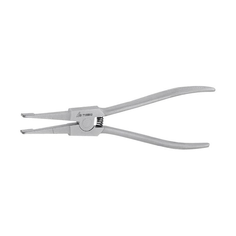Esecuzione: Punte specificamente forgiate per il montaggio di anelli elastici di spallamento senza fori di presa. Con apertura a molla.Pinza cromata, ganasce diritte. Uso: Per anelli elastici e anelli di sicurezza senza fori di presa. Materiale: Acciaio al cromo-vanadio. Impiego pinze per anelli di sicurezza: Anelli elastici e anelli di sicurezza senza fori di presaLunghezza complessiva: 170 mmApertura minima fessura: 3,6 mmper ⌀ alberi: 8 − 40 mm