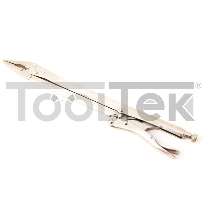 Pinza a scatto autobloccante a becchi dritti.Spessore del becco: 9,5 mm Lunghezza del becco: 50 mm Lunghezza totale: 370 mm Larghezza regolabile con rotella a vite e sistema di bloccaggio rapido a leva. Realizzata in acciaio forgiato Prodotto di qualità LA FATTURA VIENE EMESSA PER ACQUISTI SUPERIORI A 20 € E VA RICHIESTA NEL MOMENTO DELL' ACQUISTO