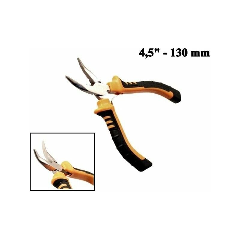 MINI PINZA A BECCHI CURVICON MANICI ISOLATI130 mm.MINI PINZA DI PRECISIONE A BECCHI CURVI.REALIZZATA IN ACCIAIO CHROME VANADIUM CON MANICI IN GOMMA ISOLATI E ANTISCIVOLO.LUNGHEZZA TOTALE 130 mm