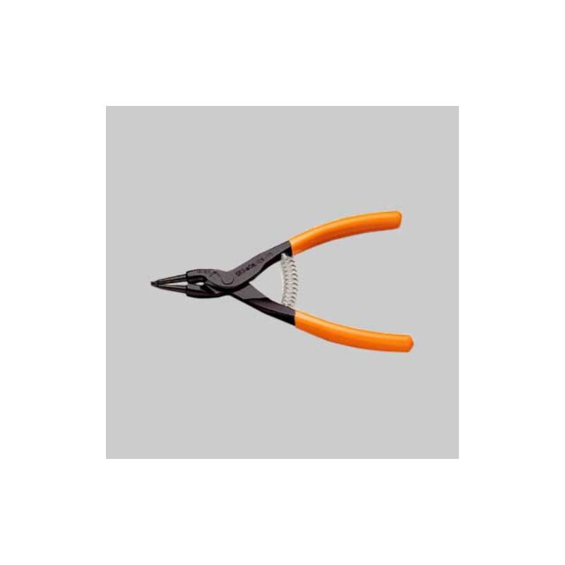 Per anelli elastici di sicurezza per alberi. In acciaio speciale. Finitura brunita, manici ricoperti in PVC. A norma DIN 5254 UNI 7915. Pinza becchi diritti per anelli esterni art. 1036 beta 140x0,9 mm - ø 3÷10 mm BETA Utensileria beta