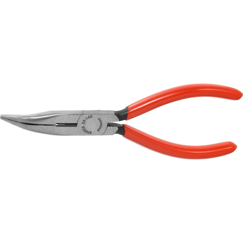 Becchi particolarmente lunghi, mezzotondi a punta. Taglienti temprati a induzione (circa 61 HRC), adatti per filo duro e dolce. Becchi zigrinati all'interno. Pinza bonderizzata nera, testa in esecuzione lucidata. Manici rivestiti in plastica. Punte di precisione elastiche resistenti alla torsione. Norma: DIN ISO 5745 Materiale: Acciaio al cromo-vanadio, forgiato e temprato in bagno d'olio. Dati tecnici Norma DIN ISO 5745 Materiale Acciaio al cromo-vanadio, forgiato in stampo e temprato in bagno d'olio Superficie bonderizzati neri Forma delle ganasce becchi mezzotondi a punta, piegati (40° - 45°) Impugnatura rivestiti in plastica Esecuzione ganasce zigrinatura all'interno Caratteristica ganasce Taglienti temprati a induzione (ca. 60 HRC) Tipo di prodotto Pinza multifunzione Lunghezza complessiva, mm 160 Lunghezza griffe, mm 50