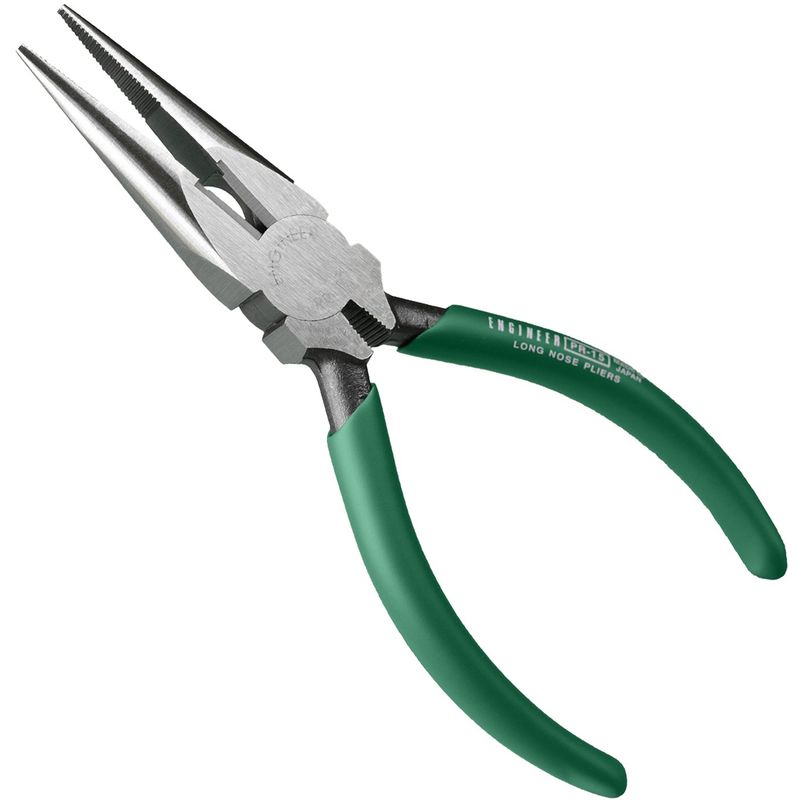 Descrizione Pinze a becco lungo di grado professionale (nominali da 125 mm) realizzate da un produttore giapponese di utensili manuali di precisione di lunga data e molto apprezzato. Queste pinze hanno ganasce seghettate per una presa solida, con ganasce di taglio a filo integrale per il taglio di filo di rame e acciaio.