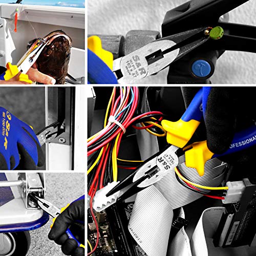 S&R Pinza a Becco Lungo Piatto con spigolo di taglio 165mm, Manici a 2 componenti