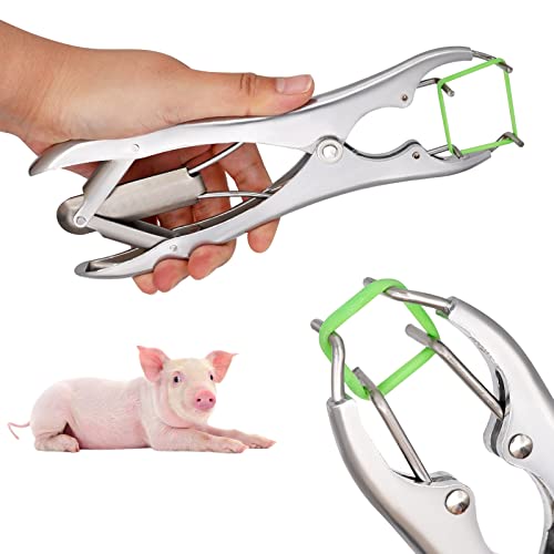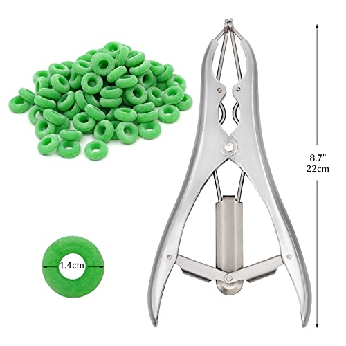 Pinza per Castrazione di Maiale in Acciaio Inossidabile Pinza Offset per Pecora Bovini Pecore Maiale Attrezzature per L'allevamento (1 Pinza e 100 Anelli)