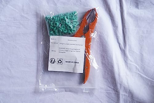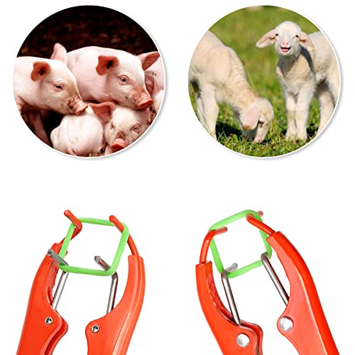 Pinza per Castrazione di Maiale Rosso Pinza Offset per Pecora Bovini Pecore per Suini Attrezzatura per l'allevamento (1 Pinza e 100 Anelli)