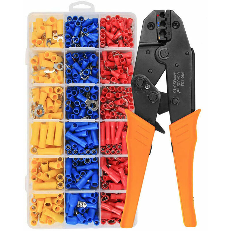 Alta precisione - - La crimpatura è precisa, le pinze hanno una buona presa e sono presenti scanalature per bloccare le pinze in una determinata posizione. Il processo di crimpatura non richiede troppo sforzo, quindi tutto può essere facilmente regolato da solo [Dotato di 700 terminali] Adatto per terminali isolati e non isolati, ghiera da 0,5 a 6 mm2, molto adatto per il tuo Progetti fai-da-te e manutenzione elettrica [Questo strumento di crimpatura è facile da usare] - È leggero e si adatta bene alla tua mano. Basta inserire il filo nelle ganasce d'acciaio e stringere la maniglia per ottenere un filo perfettamente spellato. [Organizzazione professionale] - Le pinze a crimpare terminali sono convenienti per qualsiasi lavoro elettrico. Questo vale per professionisti come elettricisti, appaltatori e privati. Nota: a causa della misurazione manuale, si prega di consentire una differenza di 0-1 cm. Grazie per la comprensione. Il metodo di calibrazione del monitor è diverso. Il colore del