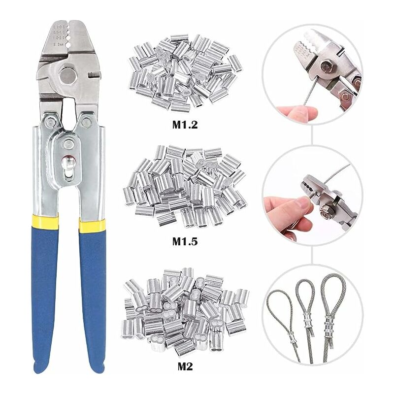 1. Tipo di prodotto: crimpatrice ad alta precisione con doppio fusto in alluminio2. Materiale del prodotto: strumento di crimpatura in acciaio inossidabile robusto, duro e robusto3. Contenuto della confezione: 3 misure da 150 puntali a doppio cilindro con strumento di crimpatura in una scatola di carta quadrata4. Caratteristiche del prodotto: pinza a crimpare con impugnature antiscivolo e meccanismo di blocco automatico per un maggiore relax e una pressione ottimale5. Applicazione: lo strumento di crimpatura coordinato con la ghiera a botte, può essere ampiamente utilizzato per funi metalliche, guinzaglio per cani, ecc.