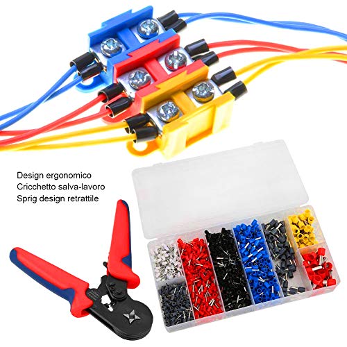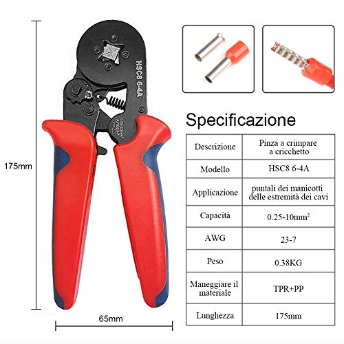 Perfetta Crimpatrice Attrezzi: AWG: 23-7 (0,25 ~ 10mm²). Ogni kit viene fornito con strumenti di crimpatura e 1200 terminali isolati per supportare piccoli progetti fai-da-te e grandi riparazioni elettriche.