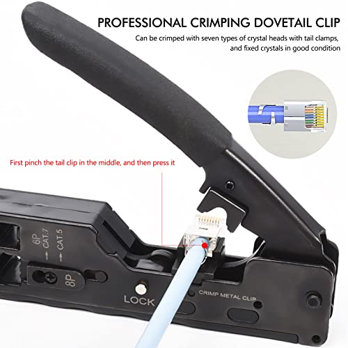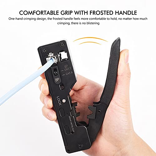 ✔ Ampia gamma di applicazioni: questo crimpatore RJ45 è ampiamente utilizzato per crimpare cavi di rete in case, uffici, laboratori, dormitori e officine di riparazione. La crimpatrice RJ45 non solo può crimpare il connettore, ma anche fissarlo in un batter d'occhio. Compatibile con tutti i connettori RJ45 schermati, non schermati, RJ45 Cat 7, RJ45 e RJ11/12.