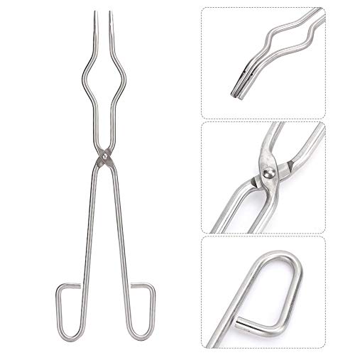 Pinza per crogiolo da 40 cm, con prua dritta, punte dentellate, materiale di laboratorio in metallo Morsetto di sostegno per becher in acciaio inossidabile