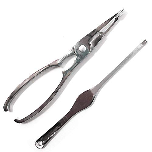 DEL - Pinza per Crostacei e Forchette per Frutti di Mare - Acciaio Inox - Set di 2 Pezzi