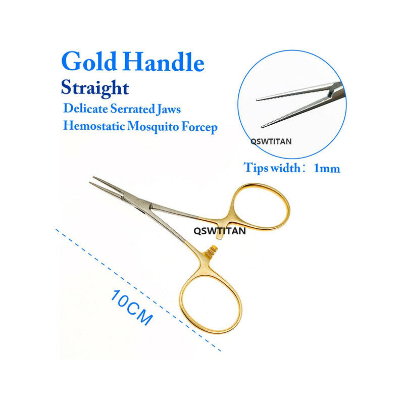 Descrizione:Made inIn acciaio inoxLunghezza totale: 10-14 centimetriTipo: Diritto/CurvoManiglia: maniglia oro Dentellata jawsImballaggio:1pcs (si prega di scegliere)Promemoria: Se avete bisogno di un emostatico pinza con manico in argento, si prega di fare riferimento al linkHttps://www.aliexpress.com/item/1005002598721486.html?spm=5261.ProductManageOnline.0.0.45494edflaSxsa