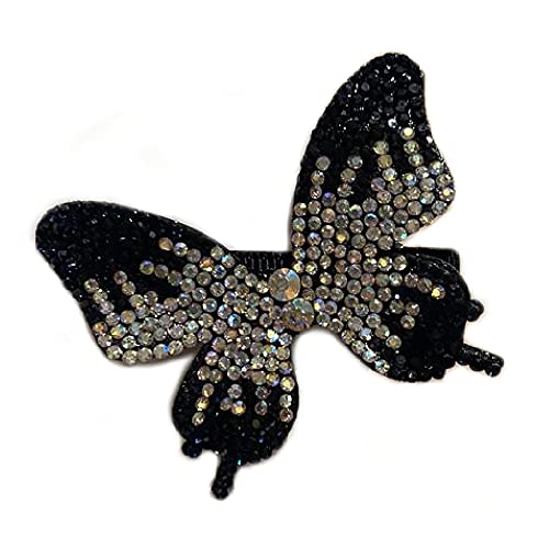 PINZA FARFALLA CLIP CRISTALLI STRASS MOLLETTA ACCESSORIO FERMA CAPELLI PINZETTA CODA CAVALLO CODINO FERMAGLIO HairPin HairClip Brillabenny (NERO)