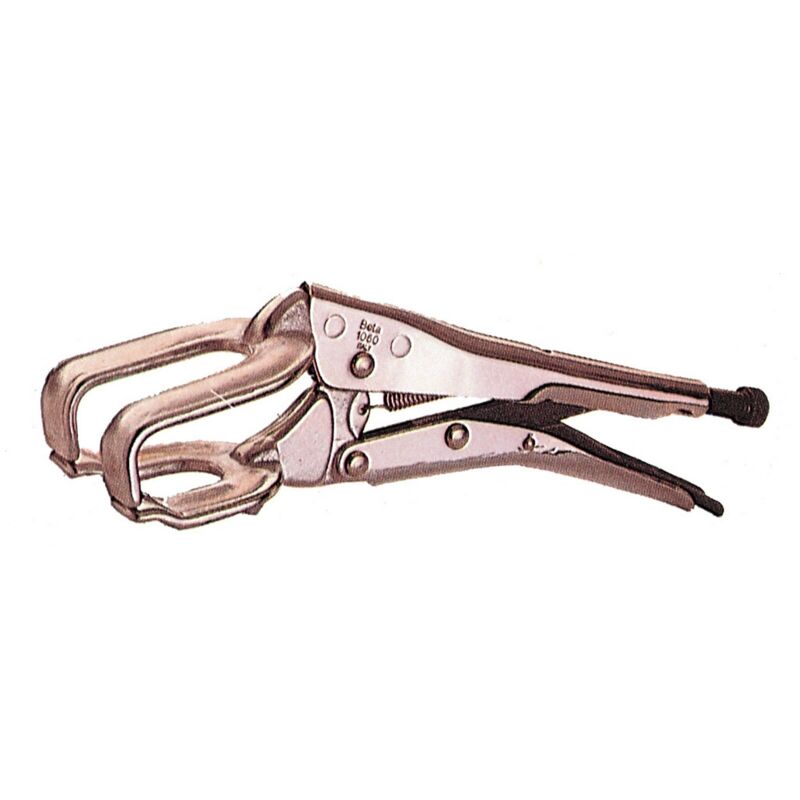 Art. 1060 regolabile autobloccante, corpo in lamiera, esecuzione cromata. Ganasce a forcella in acciaio legato. Apertura max 80 mm. Lunghezza 280 mm. Peso 930 g.