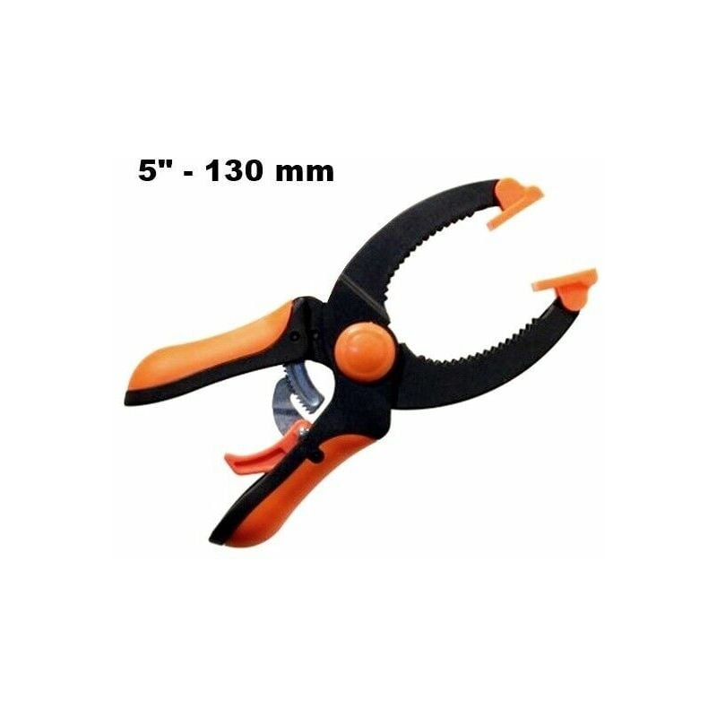 MORSETTO AUTO BLOCCANTE DA 5 -- 130 mmMORSETTO AUTOBLOCCANTE DI LUNGHEZZA 130 mm.PRATICO UTENSILE CHE VI PERMETTE DI TENERE BLOCCATO O FISSARE DUE OGGETTI PER POTERLI LAVORARE A MANI LIBERE.DOTATO DI PRATICO MECCANISMO ASEMIRUOTA DENTATA PER LA REGOLAZIONE DI PRECISIONE DELLALARGHEZZA E DI LEVA DI SBLOCCO RAPIDO.REALIZZATA INTERAMENTE IN MATERIALE PLASTICO ( TRANNE IL MECCANISMO DENTATO IN ALLUMINIO )ECCEZIONALMENTE RESISTENTE ED ALTRETTANTO LEGGERA.BECCHI DI LARGHEZZA 17 mmMISURE:LUNGHEZZA TOTALE 130 mmLARGHEZZA MAX AGGANCIABILE 40 mmBECCHI DI LARGHEZZA 17 mm