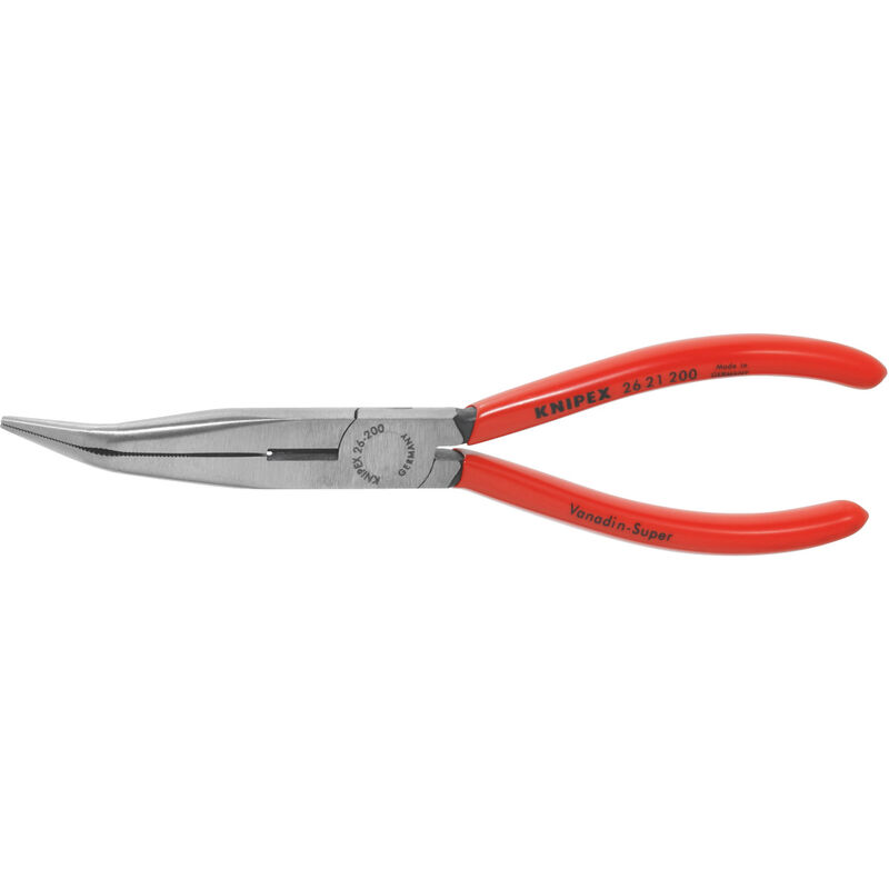 Becchi particolarmente lunghi, mezzotondi a punta. Taglienti temprati a induzione (circa 61 HRC), adatti per filo duro e dolce. Becchi zigrinati all'interno. Pinza bonderizzata nera, testa in esecuzione lucidata. Manici rivestiti in plastica. Punte di precisione elastiche resistenti alla torsione. Norma: DIN ISO 5745 Materiale: Acciaio al cromo-vanadio, forgiato e temprato in bagno d'olio. Dati tecnici Norma DIN ISO 5745 Materiale Acciaio al cromo-vanadio, forgiato in stampo e temprato in bagno d'olio Superficie bonderizzati neri Forma delle ganasce becchi mezzotondi a punta, piegati (40° - 45°) Impugnatura rivestiti in plastica Esecuzione ganasce zigrinatura all'interno Caratteristica ganasce Taglienti temprati a induzione (ca. 60 HRC) Tipo di prodotto Pinza multifunzione Lunghezza complessiva, mm 200 Lunghezza griffe, mm 73