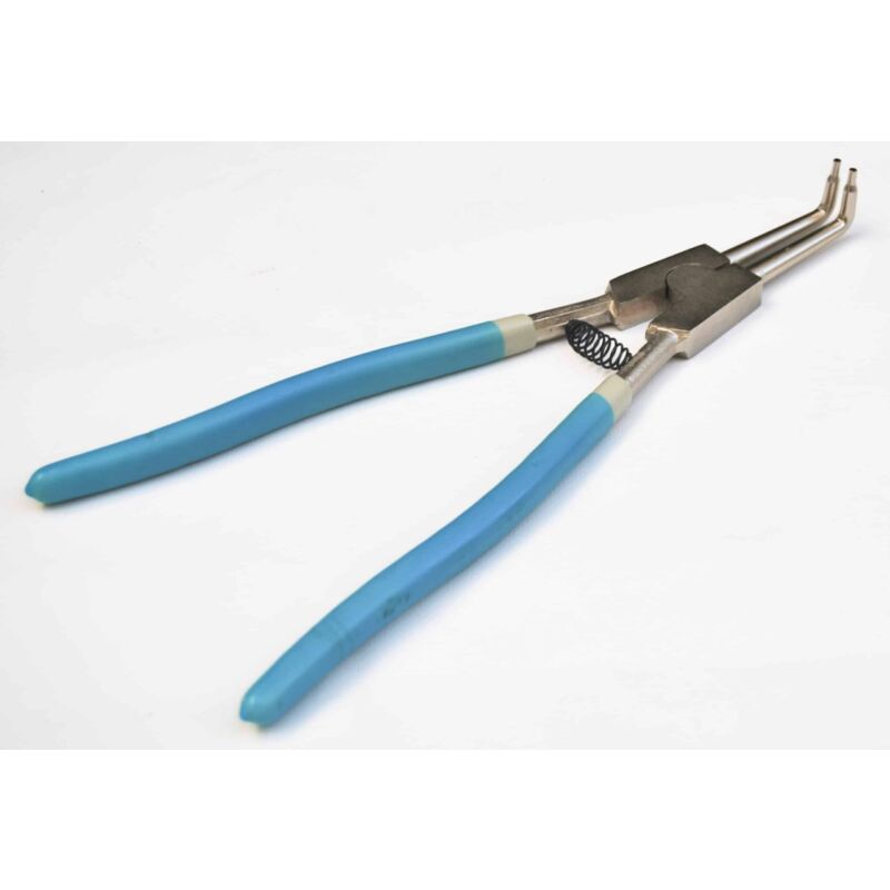 PINZA SINGOLA SEEGER IDEALE PER STRINGERE E CHIUDERE ANELLI ELASTICI SEEGER MISURE: LUNGHEZZA 330 mm DIAMETRO PUNTE: 3 mm APERTURA MIN: 6 mm APERTURA MAX: 40 mm