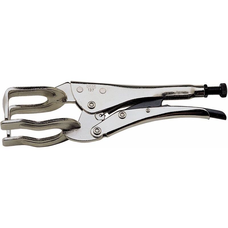 PINZA GRIP A PRESSIONE AUTOBLOCCANTE CON GANASCE A FORCELLA PROFESSIONALE USAG 137 137001 Caratteristiche Per la saldatura di tubi, lamiere e profilati Ganasce in acciaio speciale altamente legato al Cromo Vanadio Corpo in lamiera d'acciaio imbutita Esecuzione nichelata Dettagli famiglia Codice L mm a mm b mm U01370001 280 50 80