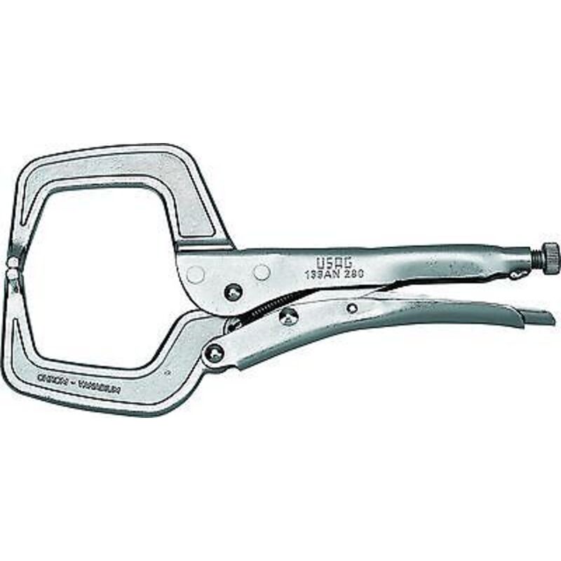 Pinza regolabile autobloccante con ganasce a collo di cigno 280mm 139 AN. Per il bloccaggio di profilati ed angolari. Ganasce in acciaio speciale altamente legato al Cromo Vanadio. Pinza regolabile autobloccante con ganasce a collo di cigno 280mm 139 AN. Per il bloccaggio di profilati ed angolari. Ganasce in acciaio speciale altamente legato al Cromo Vanadio. Corpo in lamiera d'acciaio imbutita. Esecuzione nichelata.