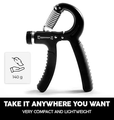 Resistenza regolabile - L'hand grip ha un sistema regolabile di resistenza che va dai 10 ai 60 Kg, per potersi adattare a qualsiasi tipo di esercizio e persona. É semplice da regolare, basta solo ruotare la manopola fino a trovare la tensione adeguata alle proprie esigenze.