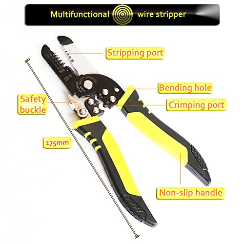 Buona qualità: la pinza spelafili automatica utilizza la tecnologia di metallurgia a polvere, realizzata in PVC + materiale PRT. Lame in acciaio per utensili con buona affilabilità.