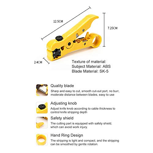 Pinza spellafili universale Network Cable Stripper Tool Flat or Round UTP Cat5 Cat6 Wire Coaxial Coriial Tool - Giallo