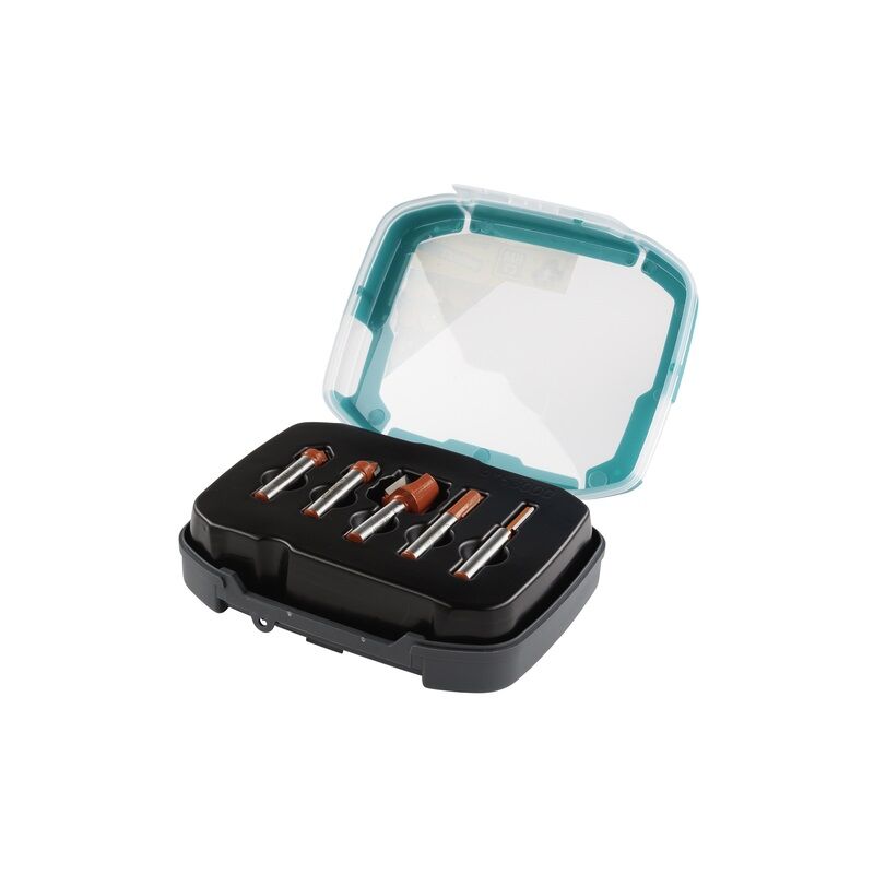 Dati tecnici: materiale HM diametro albero 8 mm lunghezza albero 40 mm velocità massima 22.000 giri/min Per lavori di fresatura precisi con fresatrice e motore di fresatura stazionario 1 fresa HM, 10 x 20 mm 1 fresa, HM, 20 x 20 mm 1 fresa. fresa, HM, 12,5 x 10,5 mm, 45° 1 fresa, HM, O 12,5 x 9,5 mm, r 6,25 mm **