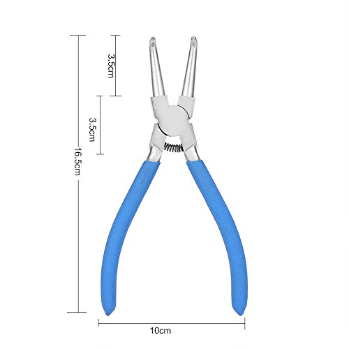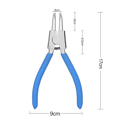 【2 pinze dritte e 2 piegate】: il set di pinze per anelli elastici è composto da due pinze per chiusure interne e due pinze per fusibili esterni. Le punte sono sia dritte che curve.