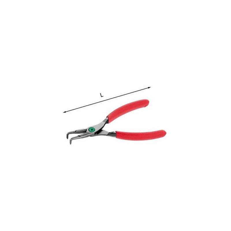 PINZE A BECCHI PIEGATI A 90° PER ANELLI ELASTICI INTERNI • Modello di precisione • Punte in acciaio armonico inserite nei becchi: durata superiore rispetto alle punte tornite • Superficie di appoggio degli anelli tra le punte ed i becchi • Molla integrata nel corpo della pinza • Manici rivestiti in PVC antiscivolo • Esecuzione verniciata trasparente Codice Capacità mm L mm U01270024 19÷60 175