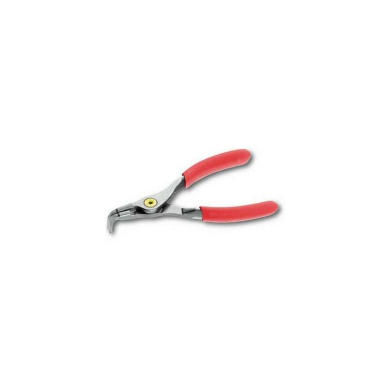 PINZE A BECCHI PIEGATI A 90° PER ANELLI ELASTICI ESTERNI • Modello di precisione • Punte in acciaio armonico inserite nei becchi: durata superiore rispetto alle punte tornite • Superficie di appoggio degli anelli tra le punte ed i becchi • Molla integrata nel corpo della pinza • Manici rivestiti in PVC antiscivolo • Esecuzione verniciata trasparente Codice Capacità mm L mm U01280024 19÷60 180