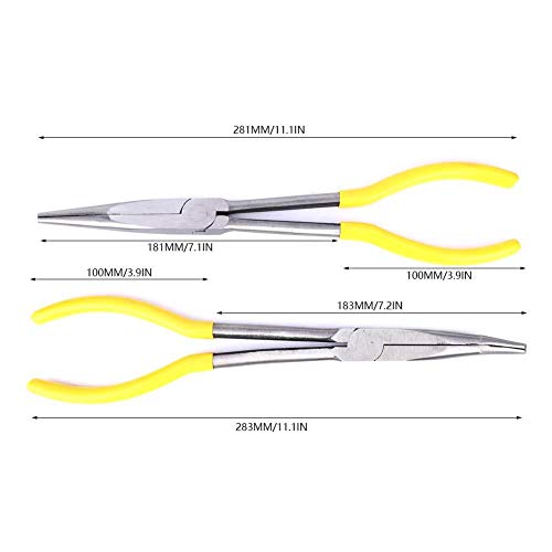 Pinze a becchi lunghi -2 pezzi Pinze a becchi lunghi 11 pollici in acciaio al carbonio 45 gradi di piegatura utensile da officina utensile manuale