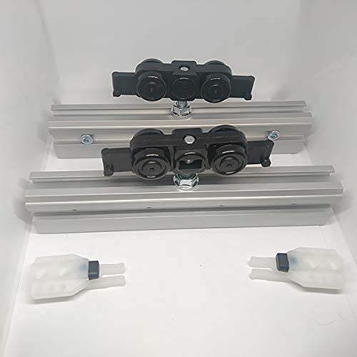 Ecco cosa forniamo: 1 binario a misura - 2 fermi laterali a pinza in nylon - 2 carrelli con ruote in nylon