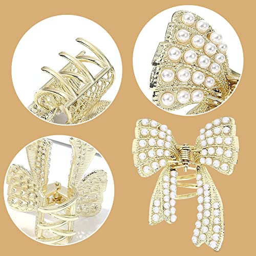 SWZY 2pcs pinze per capelli dorate con perle, a forma di farfalla, in metallo, per donne e ragazze