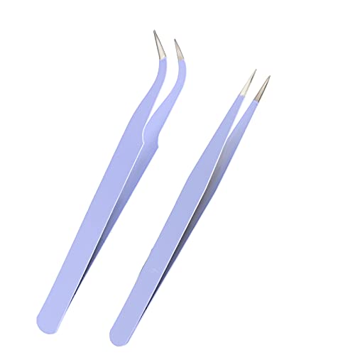 AIEX 2 pinze per ciglia, pinze per volume russo, pinze per ciglia in acciaio inossidabile, pinze per ciglia a punta dritta e curva (viola)